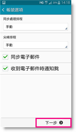 10 Synchronize email, select "Next"