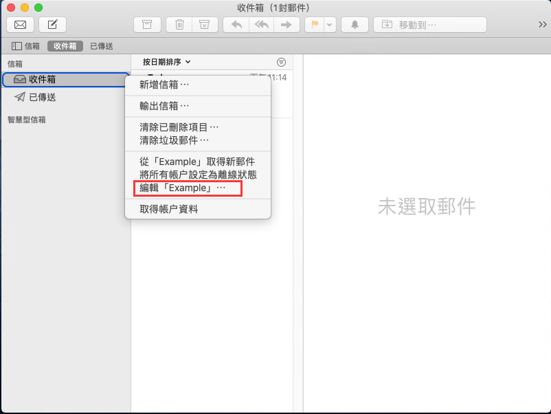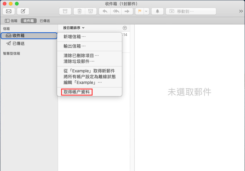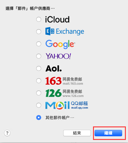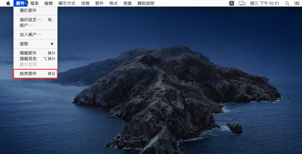 12 儲存成功後,重啟"郵件"程式,點擊"郵件",選擇"結束郵件"