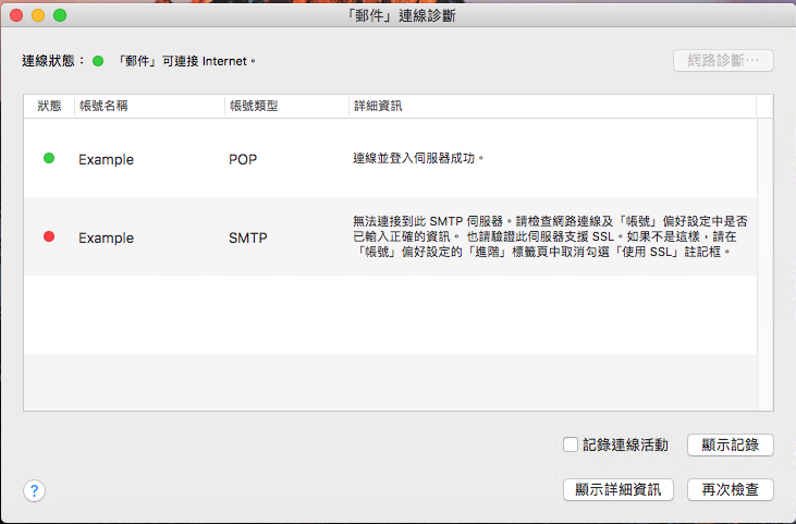 02 顯示如下則說明SMTP無法連接,設定出現問題