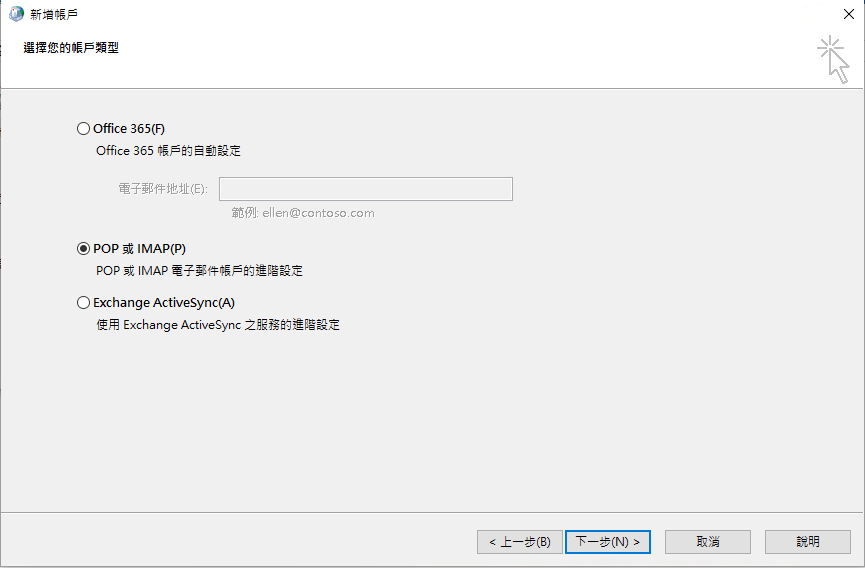 05 出現舊版的帳戶設定畫面,此時再根據之前的方法新增帳戶即可.