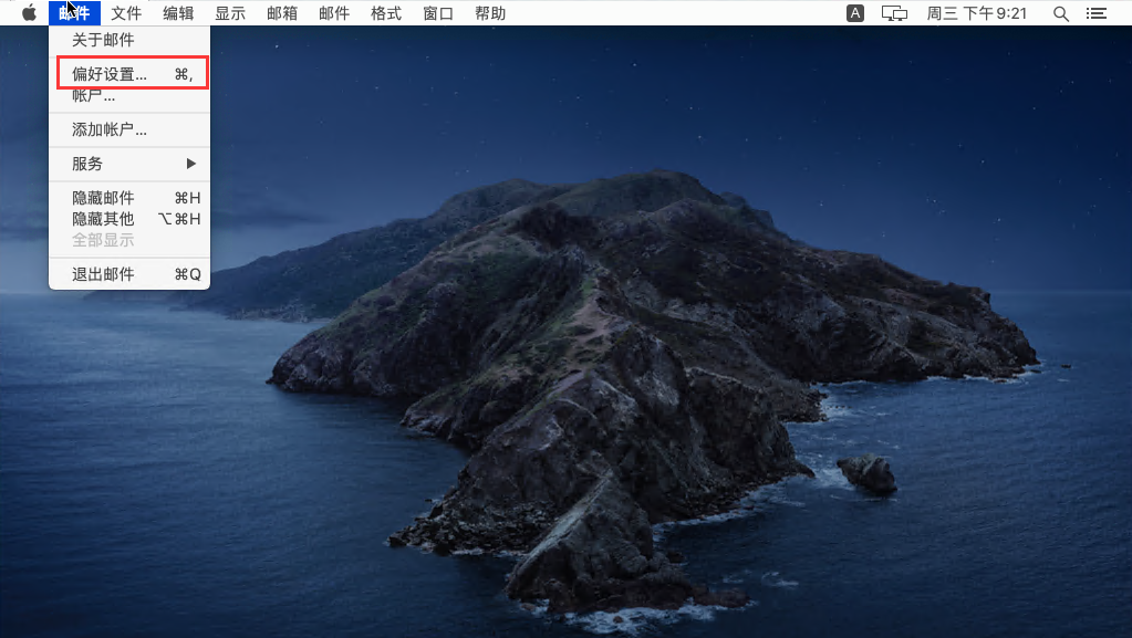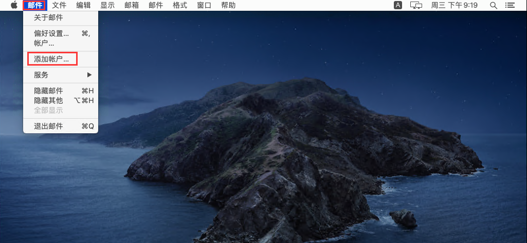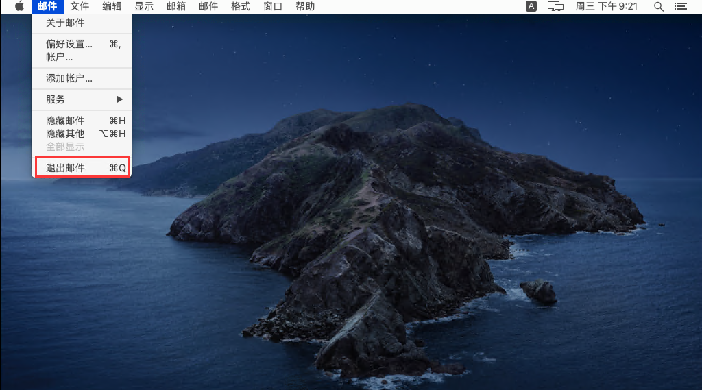 12 储存成功后,重启"邮件"程式,点击"邮件",选择"退出邮件"