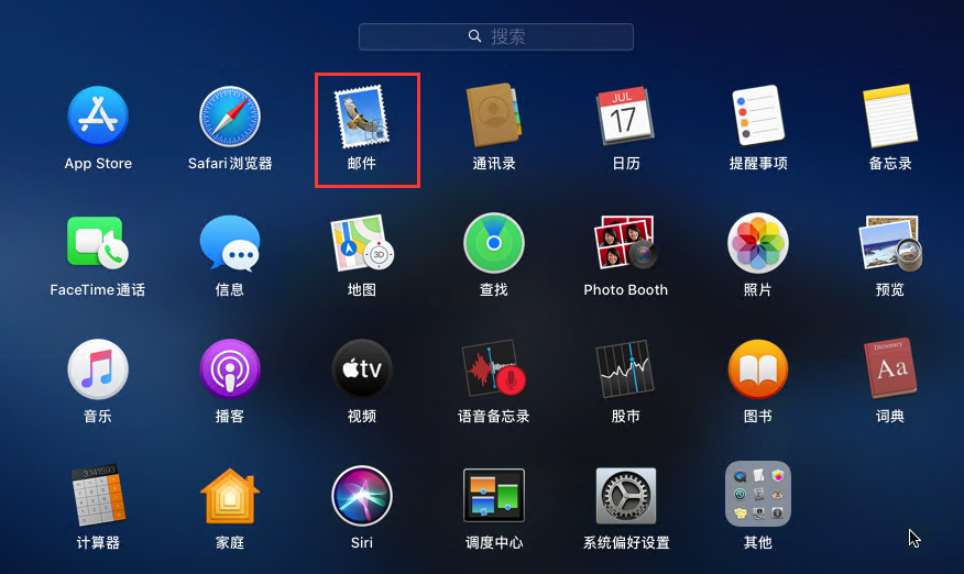 或者打开底部的"启动台"火箭图标,再打开"邮件图标"