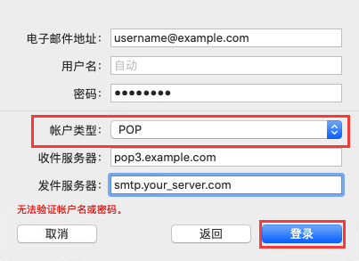 06 输入"收件服务器"和"寄件服务器",并按"登入",如果显示登入"失败",则继续按"登入",使得设置得以储存