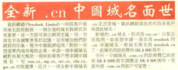 全新 .cn 中国域名面世
