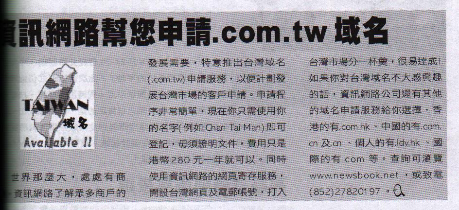 资讯网络帮你申请台湾域名
