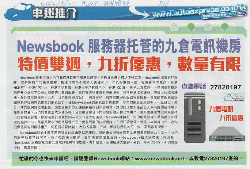 资讯网络是香港最大的网页储存,网页寄存,服务器托管,服务器租用,网页设计公司 资讯网络(Newsbook)是香港最具规模的网页储存商,提供稳定可靠的网页寄存及电邮服务,适合香港,中国及其他地区客户。