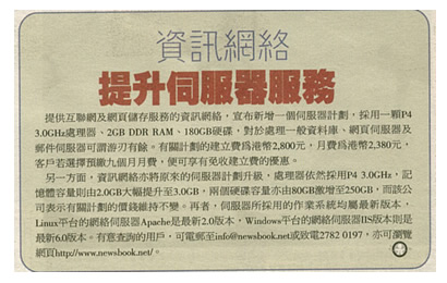 Newsbook services : email, web hosting providers, hosting services, virtual website hosts, web page design, Liunx dedicated server, Windows dedicated host, HK host colocation, server rental, China server colocation, Hong Kong server rental, China server rent, IDC data center, domain name registration, news,1,2, sitemap |
