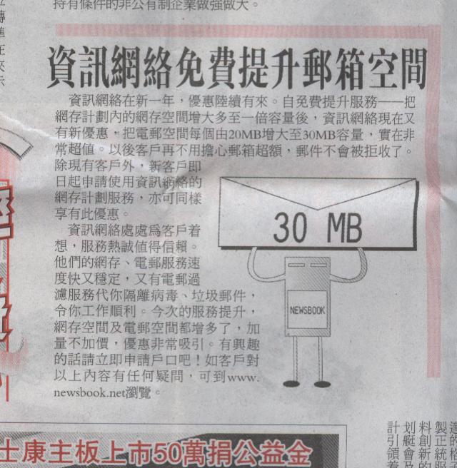 Free Upgrade Email account  stroge by Newsbook