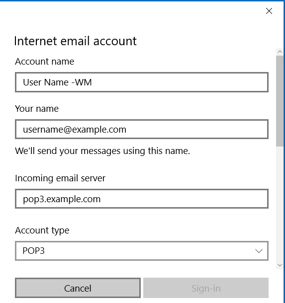 In Account name put the first part of your email address (Everything before the @ Symbol)(Account name will be shown in the software).